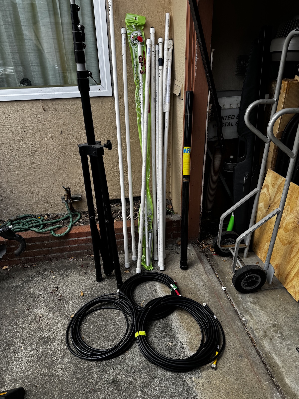 - Several, MFJ MFJ-1919EX tripod, 18 foot (have 3 available, one shown)