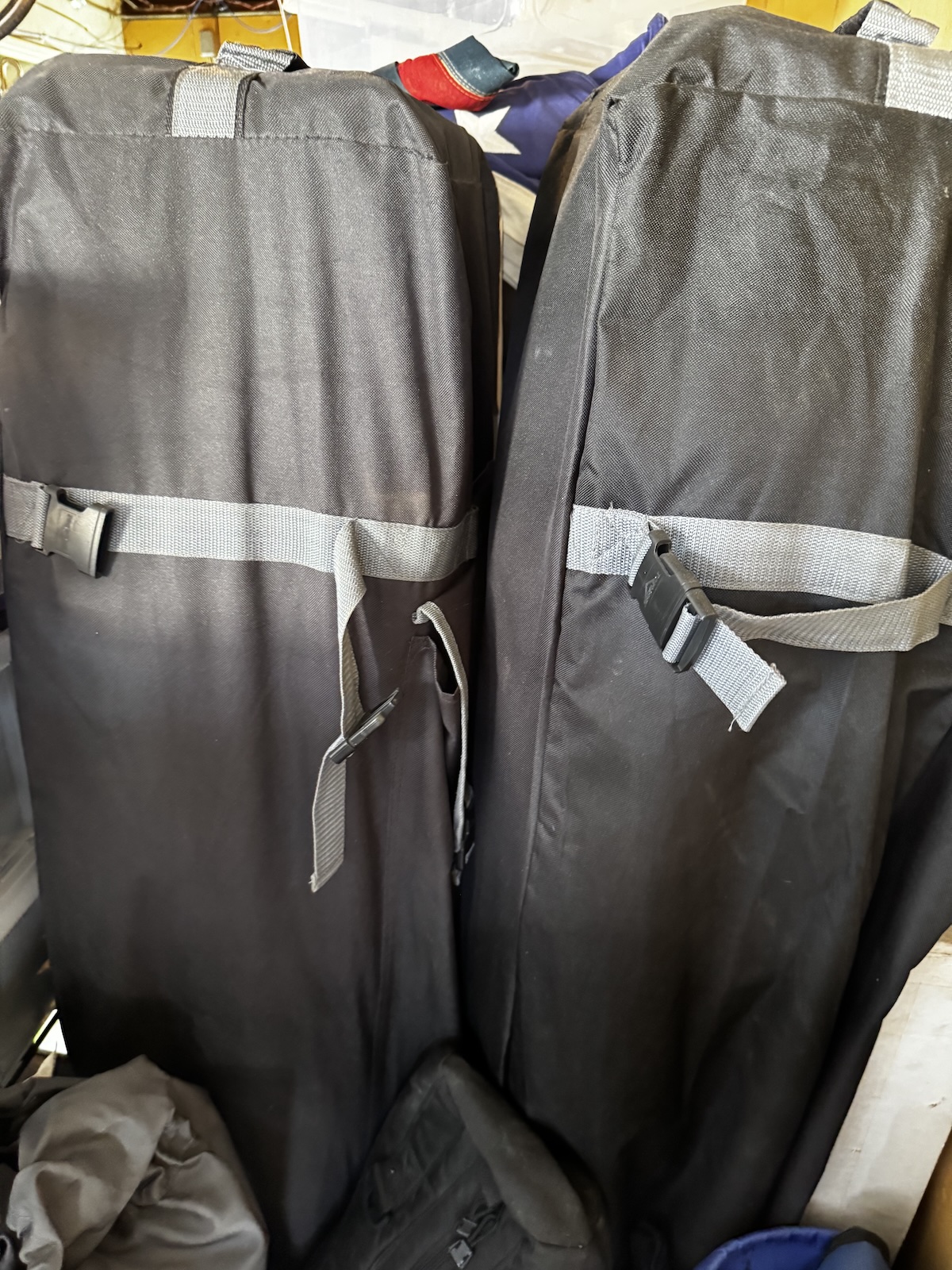 - Two 10 foot x 100 foot pop-up canopies, in bags